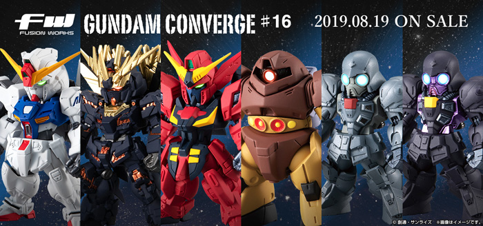 將精密的細節“CONVERGE=彙集”於一身的食玩公仔「FW GUNDAM CONVERGE」系列第16彈,於本日8月19日(一)起在日本國內玩具店、家電量販店、網路商店等處發售。共6種,售價為500日圓(未稅)。