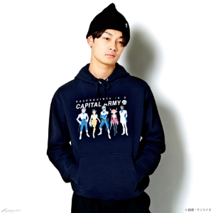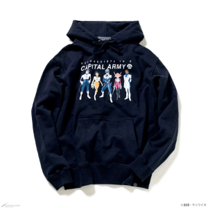 T恤受作品風格啟發,以POP的校園風編號設計的MS圖樣3種,而連帽T恤則以平面藝術表現出中樞軍和海盜部隊成員的2種,分別推出。