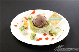 ・抹茶蛋糕卷佐巧克力冰淇淋點心盤
