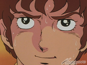 這二個人雖然這次是首次面對面,但這個時候阿姆羅竟然一眼就看出對方是夏亞。可是呢,對於這個宿命的對手夏亞連說出自己的名字都得費盡全力,最後也只是「支支吾吾」了一陣。到底是怎麼回事啊,怎麼會這麼膽小呢!? 這個場面要是雪拉小姐在的話,一定會一邊罵「軟弱的東西!」一邊賞他耳光呢!