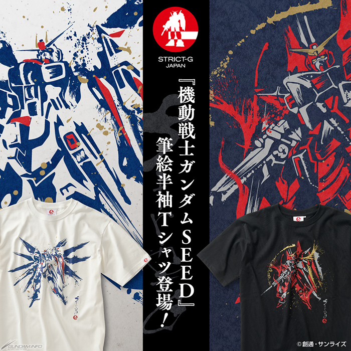本次發售的商品來自「STRICT-G JAPAN」系列,目的在於傳達和展示日本產品設計的魅力,並創造出全新的價值觀。短袖T恤以手繪和風圖案設計了『鋼彈SEED』登場的自由鋼彈和正義鋼彈。