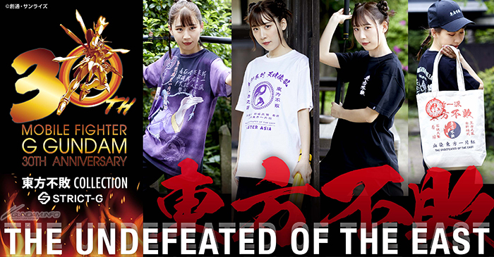 本系列服飾是紀念『G鋼彈』30週年而登場,推出以流派東方不敗和亞洲天王為王設計概念的商品。商品陣容有T恤2種、全彩T恤、鴨舌帽、漁夫帽、托特包、玻璃杯、附吊練橡膠杯墊。