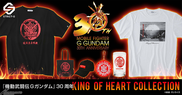 為紀念『G鋼彈』30週年,本系列推出以紅心之王紋章及流派東方不敗為設計主題的服飾商品。包含兩款T恤、帽子、托特包、玻璃杯及附有鑰匙圈的橡膠杯墊等共計6款商品。