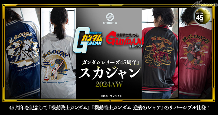 「STRICT-G『鋼彈系列』45週年橫須賀外套」共2種,將於今天9月20日(五)13:00起在PREMIUM BANDAI内「STRICT-G Online Store」開始開放預約。售價為各35,200日圓(含稅)。