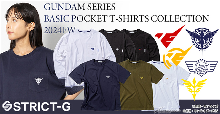 「STRICT-G BASIC『鋼彈系列』短袖口袋T恤」和「長袖口袋T恤」各3種,將於今天10月11日(五)13:00起開始在PREMIUM BANDAI内「STRICT-G Online Store」開放預購。