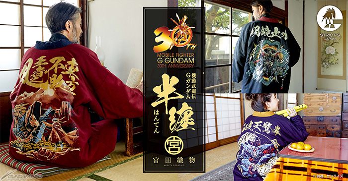為紀念『機動武鬥傳G鋼彈』30週年,和創業超過百年的福岡縣筑後市木綿織物製造公司「宮田織物」聯名的棉襖半纏登場。
