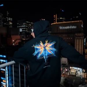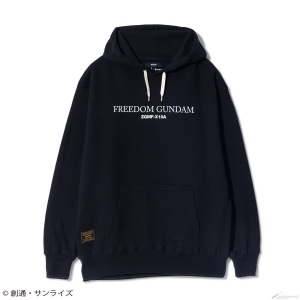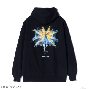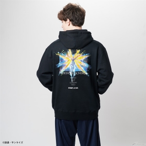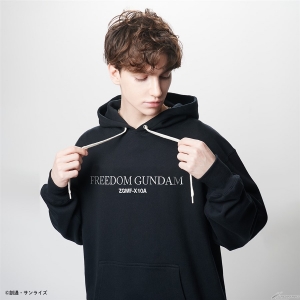 將自由鋼彈融入街頭時尚的經典元素,打造出這款連帽上衣。背面採用現代風格的印花設計,以當代水彩畫技法壯麗呈現自由鋼彈,營造出充滿前衛感的視覺效果。而正面則以機體名稱與型號的標誌設計,平衡整體風格,使穿搭更為簡單易襯。