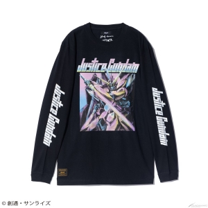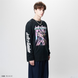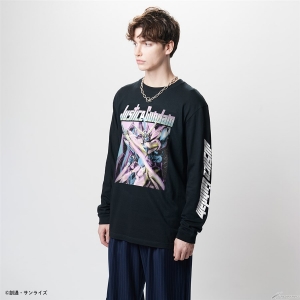 將正義鋼彈與復古文化融合的長袖T恤。設計風格採用老派美學,構圖讓人聯想到經典科幻電影,並以 glamb 特色的復古筆觸繪製圖像。此外,雙臂上也設計印有機體名稱,充分展現此次聯名企劃的精髓。