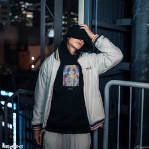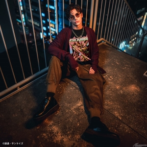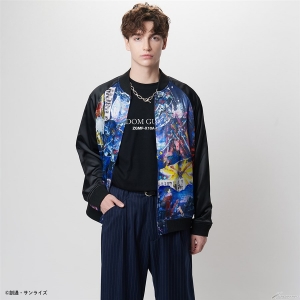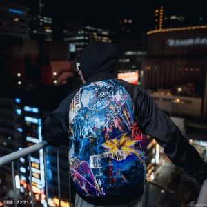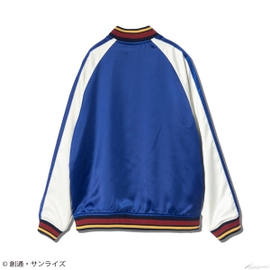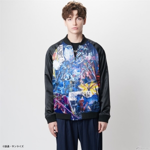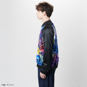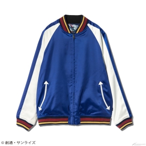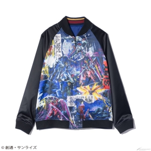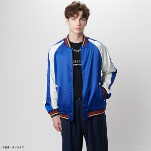 呈現『機動戰士鋼彈SEED』世界觀的兩面外套。以緞面光澤布料製成的橫須賀外套,以攻擊鋼彈為靈感設計配色,展現獨特風格。月牙形口袋、滾邊設計與條紋羅紋細節,增添街頭時尚氛圍,使整體造型更具個性。
