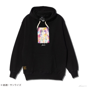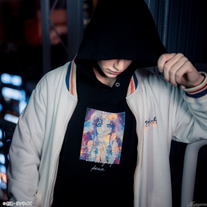 這款連帽上衣採用拉克絲・克萊因為主題設計。胸前的肖像以細膩的水彩技法描繪,呈現出柔和而華麗的視覺效果。此外,動畫中經典台詞「拉克絲・克萊因將為和平而歌」亦以英文拼貼的方式融入設計,營造出富有詩意的藝術氛圍。