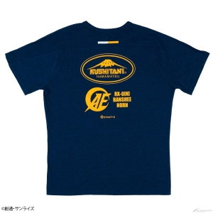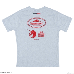 這款FLOW T恤以吸汗速乾的斑駁紋布料為基底,正面以單點印花方式配置KUSHITANI的標誌,背面則印有KUSHITANI橢圓富士山Logo以及各作品的代表圖案。共推出三種顏色款式,黑色以『機動戰士鋼彈』夏亞為靈感、白色以『機動戰士鋼彈UC』中獨角獸鋼彈為概念設計、黑色以報喪女妖為設計概念。