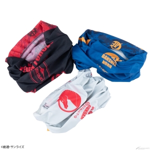 這款脖圍採用彈性材質,騎乘摩托車或運動時可作為面罩使用,也可纏繞於脖子作為防曬,用途廣泛。共推出三種顏色款式,黑色以『機動戰士鋼彈』夏亞為靈感、白色以『機動戰士鋼彈UC』的獨角獸鋼彈為概念設計、黑色以報喪女妖為設計概念。