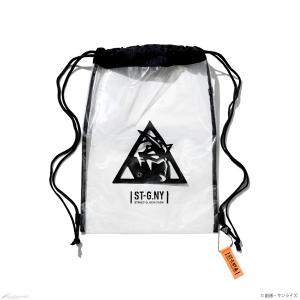 可以攜帶每日必需品的簡潔款式,以透明聚氨酯製成的健身束口袋。附屬了橘色的飛行標籤。