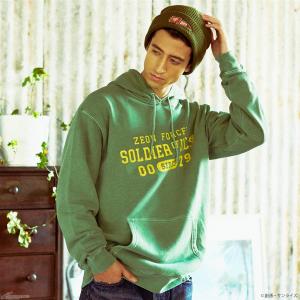 印有懷舊裂紋圖案,有FOR EARTHNOID款式、ZEON SOLDIER款式、REDCOMET款式共3種連帽T恤。使用了保留綿的質感以及聚酯纖維機能性的CVC刷毛材質。縫製後經過染色・洗衣染色加工,呈現出自然的皺褶和適當的退色,充滿重度使用質感的魅力。