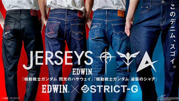 結合鋼彈世界觀的流行服飾品牌商店「STRICT-G」,3月5日(六)起代表日本的國產牛仔褲品牌「EDWIN」,將發售『機動戰士鋼彈 逆襲的夏亞』『閃光的哈薩威』的聯名牛仔褲。