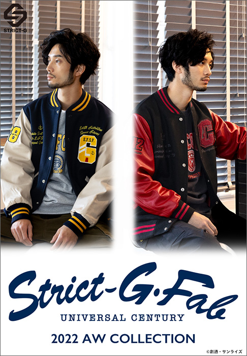 「STRICT-G.Fab」是以『機動戰士鋼彈』世界為基礎,提出具有復古感的美式休閒風格的品牌。「22AW系列服飾」推出有強烈復古老式校園印象的「運動場外套」、「學院標誌排汗上衣」及「學院標誌T恤」3款。