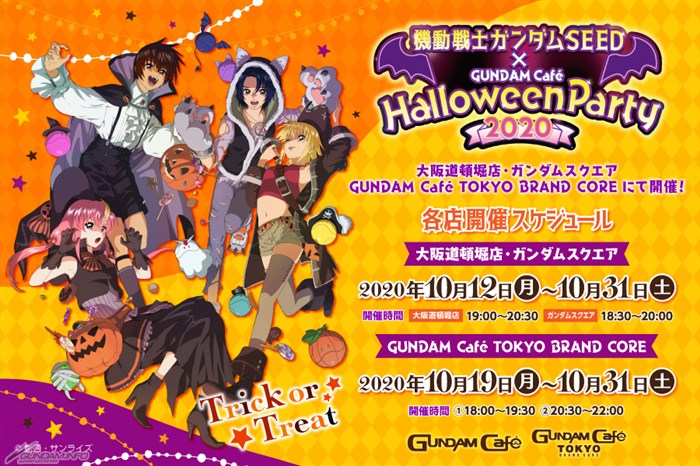 體驗型娛樂主題餐廳設施「GUNDAM Café TOKYO BRAND CORE」與GUNDAM Café大阪道頓堀店、大阪のGUNDAM SQUARE3間門市,將從10月12日(一)起依序舉辦「『機動戰士鋼彈SEED』×GUNDAM Café Halloween Party 2020」。