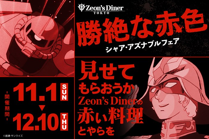互動型娛樂主題餐廳設施「GUNDAM Café TOKYO BRAND CORE(GUNDAM Café TOKYO)」的「Zeon’s Diner TOKYO」,將從11月1日(日)起舉行「輝煌的紅色~夏亞・阿茲納布爾祭典~」。