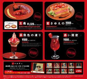此祭典供應有以夏亞為主題的餐點「主義」「因為太年輕」,以及甜點「赤熱色的凍寒」、飲品「紅色秘密」。