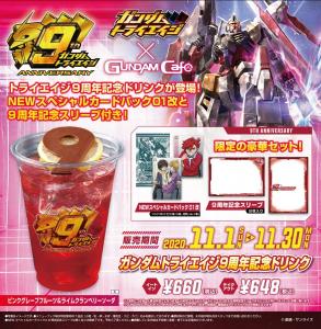 另外,11月1日(日)起,將會有紀念好評運行中的數位卡片遊戲「GUNDAM TRY AGE」迎接9週年的”合作飲品”登場。