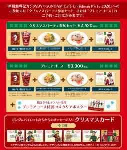 參加活動需要預約「豪華套餐」(含稅3,300日圓)或是「聖誕節派對參加套餐」(含稅2,530日圓)。以上套餐皆附有隨機種類的各角色「聖誕卡片」。