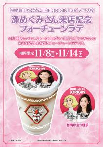 GUNDAM Café各門市至11月14日(六)為止,期間限定販售潘Megumi來店紀念特別「fortuneLatte」。