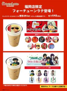 另外,還加上了「夏亞含透明水瓶飲品」,以及人氣飲品「幸運拿鐵」將『機動戰士鋼彈』和『機動戰士鋼彈00』名台詞變成博多腔的”限定圖案”也於同日登場。