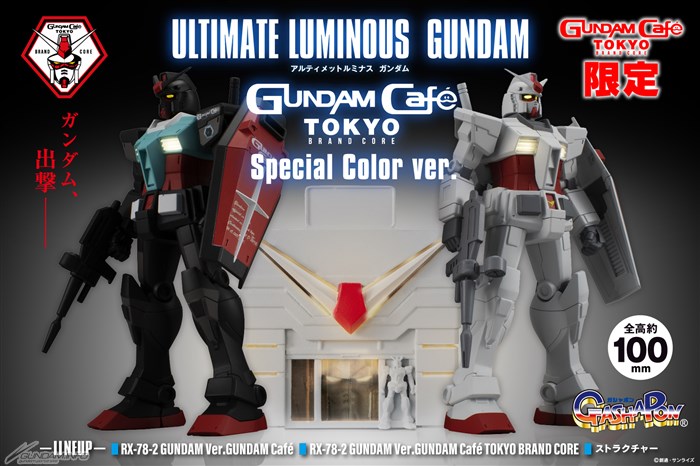 GUNDAM Café TOKYO限定登場的本商品,有「RX-78-2 GUNDAM Ver.GUNDAM Café TOKYO BRAND CORE」、「RX-78-2 GUNDAM Ver.GUNDAM Café」和GUNDAM Café TOKYO入口造形的「建築場景(發光組件)」共3種款式。