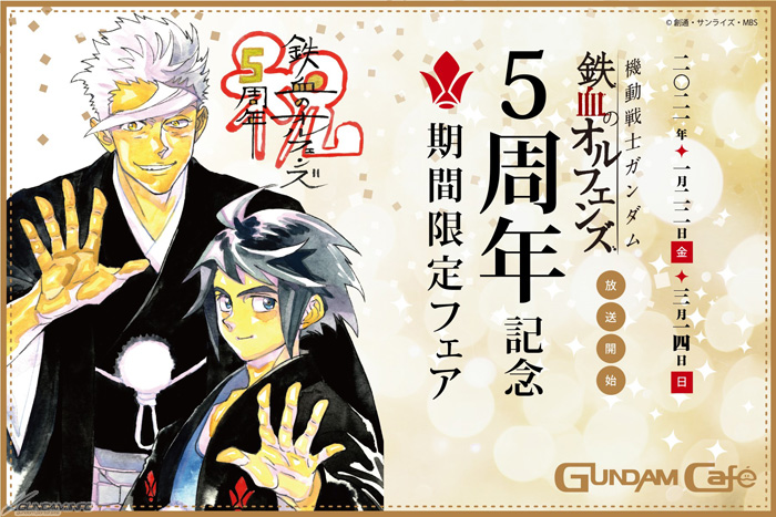 鋼彈官方咖啡廳「GUNDAM Café」各門市和大阪「GUNDAM SQUARE」,將於1月22日(五)起舉辦「『機動戰士鋼彈 鐵血孤兒』5週年記念期間限定祭典」。