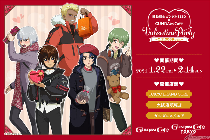 另外,鋼彈官方咖啡廳「GUNDAM Café」各門市和大阪「GUNDAM SQUARE」,也將於同一天舉辦「PICK-UP-G『機動戰士鋼彈SEED』情人節&白色情人節祭典~C.E.0069~」和「鋼彈SEED×GUNDAM Café Valentine Party ~C.E.0069ver.~」。