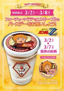另外,明日3月2日(二)起還將開始在5間門市供應「愛羅比.普露 Birthday fortuneLatte」。因為期間限定到8日(一),所以也請不要錯過。