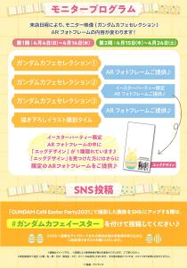 活動中除了有以復活節為構想的餐點及飲品、僅開放參加者購買的含透明水瓶飲品之外,還有大螢幕節目、限定於店內使用的復活節派對攝影專用AR相框等內容。