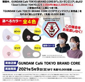 互動型娛樂主題餐廳設施「GUNDAM Café TOKYO BRAND CORE(GUNDAM Café TOKYO)」將從3月22日(一)起,舉辦「特製LOGO口罩(非賣品)贈送活動!」。