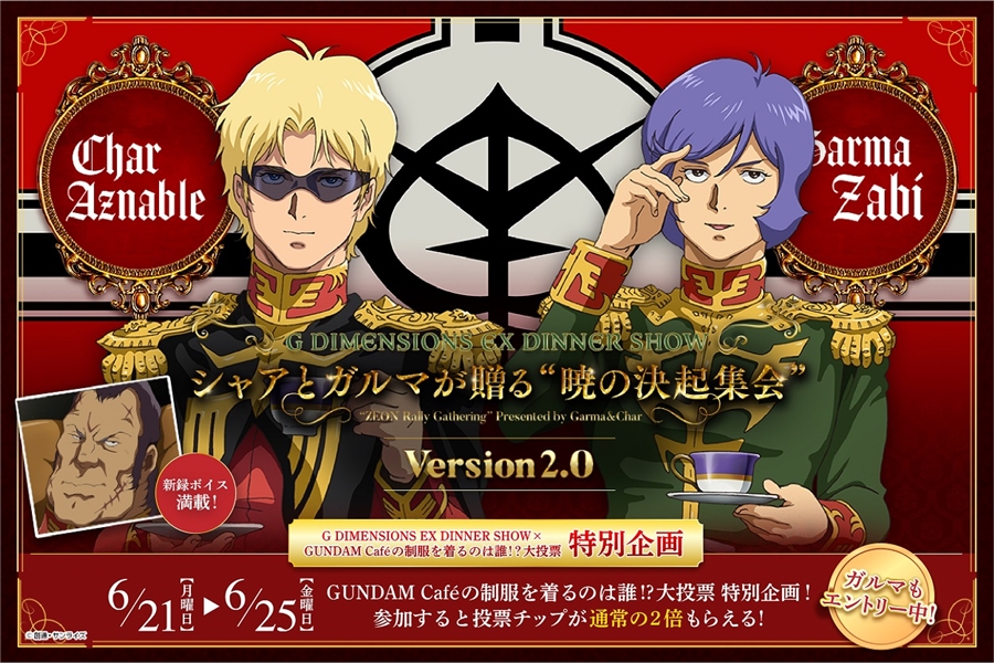 6月21日(一)起,為了紀念卡爾馬・薩比也有參加的「穿上GUNDAM Café制服的會是誰!?大投票」開始舉辦,將舉行「夏亞和卡爾馬致贈的“黎明起義集會” Version2.0」。
