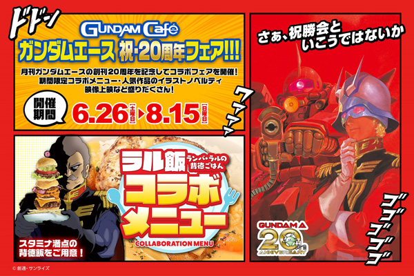 本祭典是為了紀念「月刊GUNDAM A」創刊20週年而舉行,有和好評連載中的「拉爾飯 ~蘭巴・拉爾的罪惡感餐點~」聯名的特別菜單及使用人氣作品の插圖的特別贈品登場。