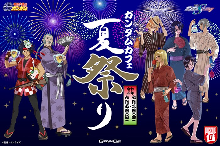 「GUNDAM Café夏日祭典」將有來自『機動武鬥傳G鋼彈』的多門和亞洲天王,出自『機動戰士鋼彈SEED DESTINY』的真、雷、阿斯蘭、海涅、伊薩克這5人,以新繪製的和服姿態插圖登場。