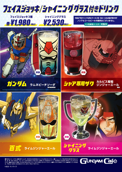 ※現正於週邊商品商店・GUNDAM Café Online販售的「MS臉譜啤酒杯」不含飲品。