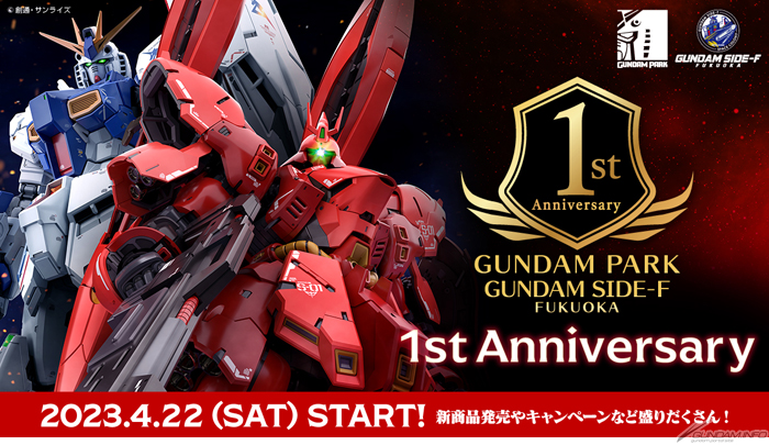 現在在Mitsui Shopping Park 福岡Lalaport 展出的「實物大ν(Nu)鋼彈立像」(RX-93ff ν鋼彈)以及同設施4樓的「GUNDAM PARK 福岡」,為了慶祝其一週年特別企劃,將於本週末4月22日(六)正式開始。