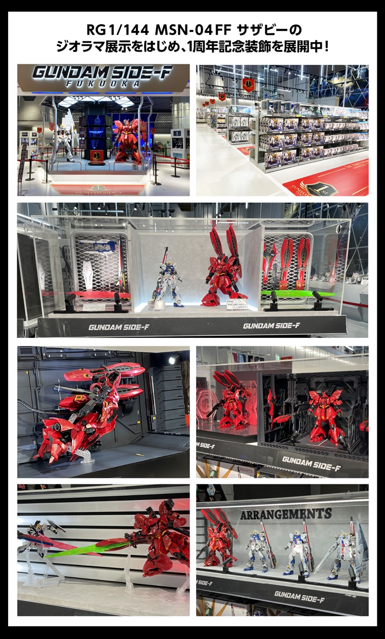 以「RG MSN-04FF 沙薩比」場景展示為首,還有1週年紀念裝飾正在舉行中。請務必藉此機會前往看看。