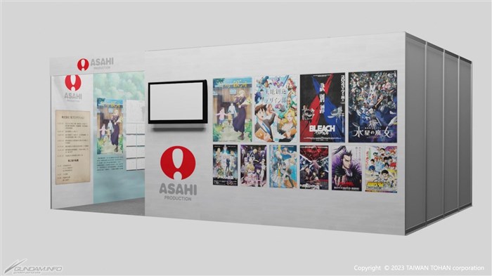 「旭Production」攤位上,將展出「旭Production」參與攝影、CG、特殊效果等合作製作的『機動戰士鋼彈 水星的魔女』和其他10部作品的海報、PV、原畫、設定集等內容。