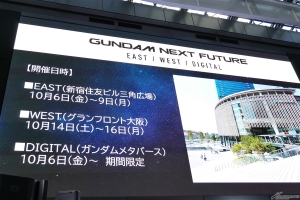 「GUNDAM NEXT FUTURE -EAST-」自10月9日(一)起好評舉辦中。下周10月14日(六)至16日(一)也將於GRAND FRONT大阪舉辦「GUNDAM NEXT FUTURE -WEST-」。活動皆免費入場。