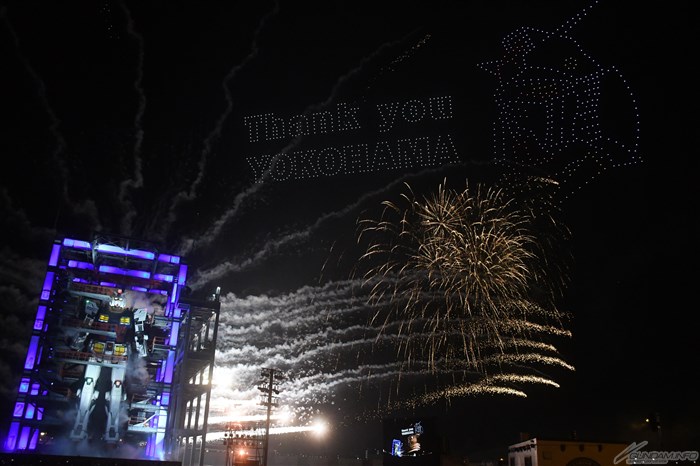 最後隨著鋼彈40週年主題曲「THE BEYOND」,夜空浮現「Thank you YOKOHAMA」的文字,點綴“可動鋼彈”的最後夜晚。