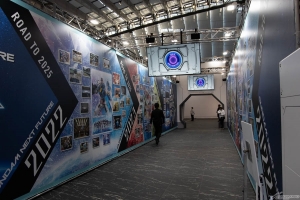 入口的大型螢幕有風靈鋼彈、全能攻擊自由鋼彈、GQuuuuuuX登場,帶領觀眾體驗通往大阪關西萬博「GUNDAM NEXT FUTURE PAVILION」的精彩影像體驗。