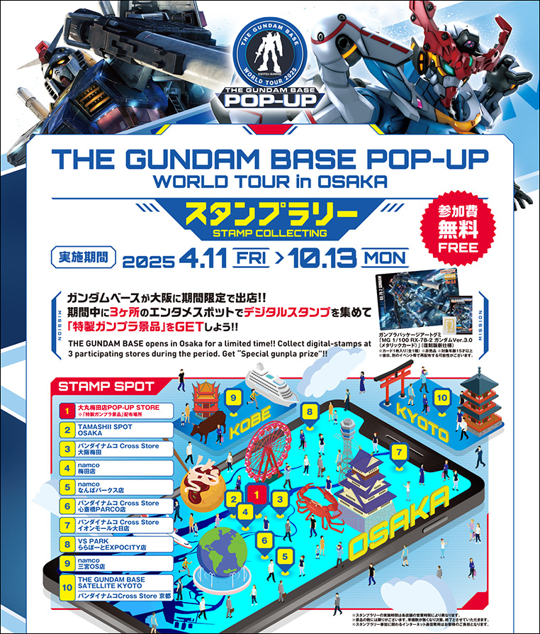 此外,還有“THE GUNDAM BASE POP-UP WORLD TOUR in OSAKA”和“tamashii nations store Satellite in OSAKA 2025”等共3個目標景點可以收集數位郵票的集票拉力賽,可以贏取“高達模型特別獎品”,請務必確認一下。