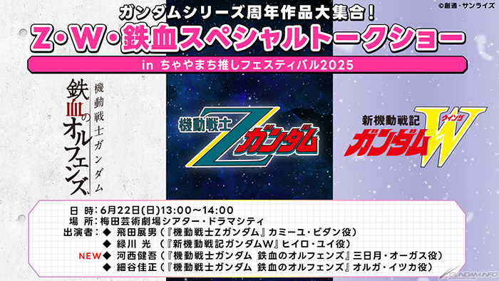 此外,在梅田藝術劇場戲劇城,舞臺活動「鋼彈系列周年紀念作品聚會! 飾演《Z鋼彈(ZZ版)》中卡密兒.維登的時田伸夫、《鋼彈W》中飾演希洛‧唯的綠川光、《鐵血歐路菲》中飾演食人魔美日月的葛西健吾和飾演歐格‧伊茲卡的細谷義正上臺發表了只有在這裡才能聽到的演講。