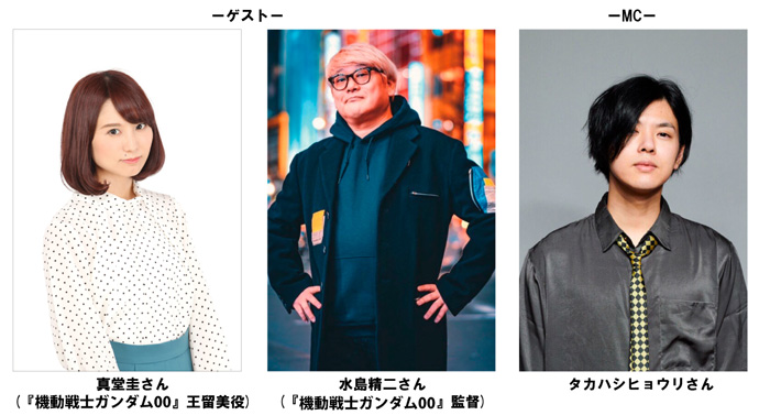 還有,座談節目的來賓請到了在『機動戰士鋼彈00』中飾演王留美的真堂圭、水島精二監督、主持人則請到了高橋表裏登場。