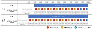 伴隨鋼彈的演出時間表變更,「GUNDAM-DOCK TOWER」遊覽時間將變更為各時段毎小時05分~50分(45分鐘)。