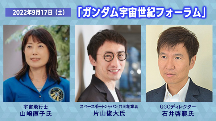本週末9月17日(六)舉行的「鋼彈宇宙世紀論壇」將有身為宇宙飛行員的山崎直子氏、身為一般社團法人Space Port Japan共同創辦人的片山俊大、參與“可動鋼彈”製作的GUNDAM GLOBAL CHALLENGE(GGC)導演石井啓範氏參加。