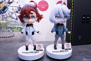 Figuarts mini「蘇萊塔・墨丘利」「米奧琳涅・連布蘭」的全高約1,000mm巨大公仔,以及「超合金 風靈鋼彈」和「S.H.Figuarts 蘇萊塔・墨丘利」等最新商品和作品介紹看板登場。
