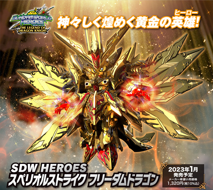 出自『SD鋼彈世界群英集』的「SDW HEROES 攻擊自由光之聖龍」等將加入2023年1月至3月的商品陣容。